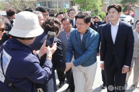 [포천=뉴스핌] 이형석 기자 = 김문수 국민의힘 대선후보가 4일 오후 경기 포천시 신평리 장자마을을 찾아 주민들과 인사를 나누고 있다. 2025.05.04 leehs@newspim.com |