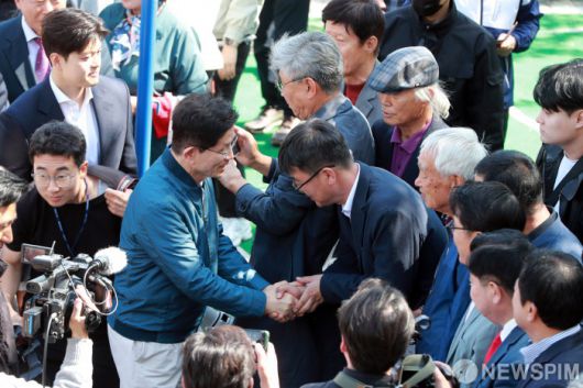[포천=뉴스핌] 이형석 기자 = 김문수 국민의힘 대선후보가 4일 오후 경기 포천시 신평리 장자마을을 찾아 주민들과 인사를 나누고 있다. 2025.05.04 leehs@newspim.com