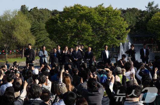 (제천=뉴스1) 이재명 기자 = '골목골목 경청투어 : 단양팔경편'에 나선 이재명 더불어민주당 대통령 후보가 4일 오후 충북 제천시 의림지에서 연설을 하고 있다. 2025.5.4/뉴스1