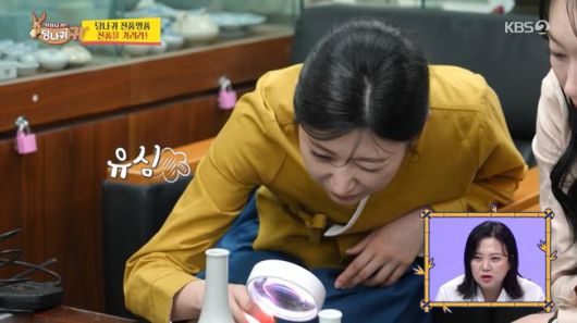 이어 엄지인은 “귀중한 보물”이라며 집안의 가보를 의뢰했다. 첫 번째로 의뢰한 100년 정도 된 도자기에 대해 이상문 위원은 “답십리에 가면 많다. 100년 정도는 오래 된 게 아니다”라고 말했다. 이에 엄지인이 “우리집 가보인데”라고 하자 이상문 위원은 “그러면 양반은 아니다”라고 꼬집어 웃음을 자아냈다. 항아리의 용도는 고추장 단지 정도에 불과했던 만큼 감정가는 2~3만 원에 그쳤다.