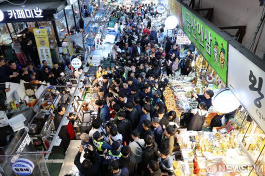 [의정부=뉴스핌] 이형석 기자 = 김문수 국민의힘 대선 후보가 4일 경기 의정부시 의정부제일시장을 방문해 상인 및 시민들과 인사하고 있다. 2025.05.04 leehs@newspim.com