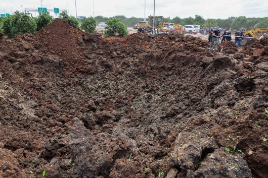 4일 예멘에서 발사된 미사일이 이스라엘 벤 구리온 공항 지역을 강타한 후 이스라엘 보안 서비스 대원들이 이스라엘 벤 구리온 공항 외곽 도로 근처의 낙하 지점을 조사하고 있습니다. /AFP 연합뉴스 |