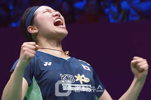 사진 제19회 세계혼합단체배드민턴선수권대회 결승에서 왕즈이를 꺾고 포효하는 안세영 |