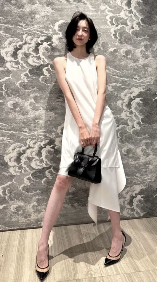 공개한 사진 속 박지현은 하얀 드레스에 까만 가방 하나만을 들고 포즈를 취하고 있으며 벽에 기대거나 앞으로 숙인 모습을 하면서도 큰 키에서 나오는 시원시원한 비주얼을 뻠내고 있다.