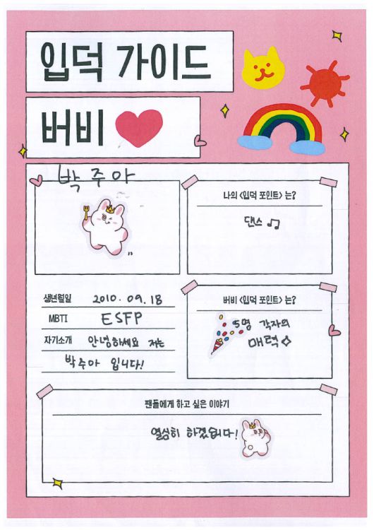 나아가 버비의 '입덕 포인트'로는 '매력적인 곡'과 '다섯 멤버들의 각기 다른 개성' 그리고 '다채로운 콘셉트의 안무'라고 적어줬어요. 그중에서도 신곡 '아에이오우(A E I O U)' 포인트 안무에 대한 남다른 애정을 과시하며, 무대 위 자신감을 엿보였습니다.