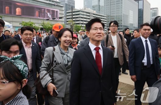 (서울=뉴스1) 허경 기자 = 김문수 국민의힘 대통령 후보가 5일 서울 종로구 광화문광장육조마당에서 열린 가족 동행 축제 '펀펀한 광화문광장'을 방문하고 있다. 2025.5.5/뉴스1neohk@news1.krCopyright ⓒ 뉴스1. All rights reserved. 무단 전재 및 재배포, AI학습 이용 금지.
