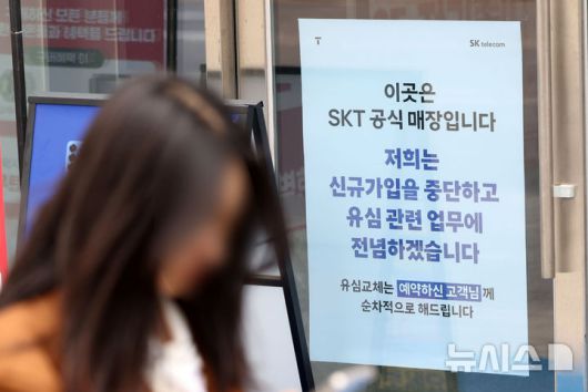 SK텔레콤은 이날부터 대리점 신규가입 영업을 중단하고 유심 교체에 집중할 계획이라고 밝혔다. 5일 오전 9시 기준 유심 교체 인원은 100만명, 유심보호서비스 가입자는 2218명으로 집계됐다. 2025.05.05. mangusta@newsis.com