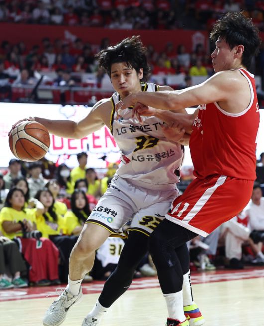 타마요(24점 10리바운드), 마레이(19점 14리바운드)가 맹활약했다. 타마요는 맞상대 최부경, 오세근을 압도했고 마레이는 워니와 대등하게 맞섰다. 이에 LG가 리바운드 대결에서 42-37 우위를 점했다. 가드 양준석이 9점 4도움을 보탰다. 다만 슈터 유기상(7점 7리바운드)의 3점 성공률이 10%(10개 중 1개)인 건 아쉬움으로 남았다.