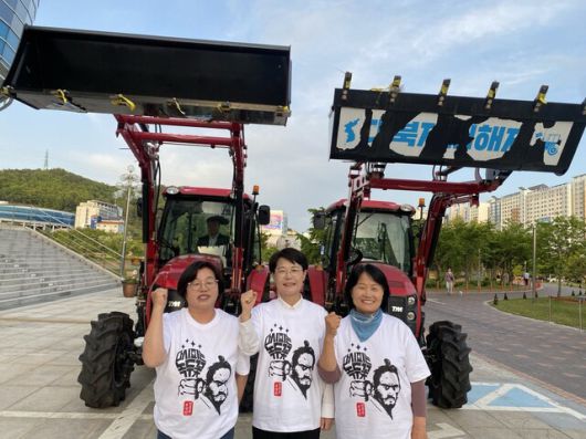 오미화 전남도의원(왼쪽부터), 전종덕 국회 농림축산식품해양수산위원회 국회의원, 오은미 전북도의원 등 진보당 소속 여성의원 3명은 6일부터 시작되는 트랙터 원정 투쟁에서 4박5일 전 구간을 동행하며 직접 트랙터를 운전할 예정이다. 전종덕 의원실 제공 |