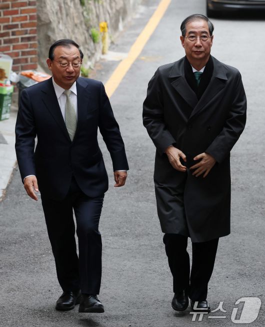 (서울=뉴스1) 박세연 기자 = 한덕수 무소속 대통령 선거 예비 후보가 5일 손학규 전 민주당 대표와 만찬 회동을 갖기위해 이정현 캠프 대변인과 함께 서울 종로구 한 식당으로 들어서고 있다. 2025.5.5/뉴스1psy5179@news1.krCopyright ⓒ 뉴스1. All rights reserved. 무단 전재 및 재배포, AI학습 이용 금지.
