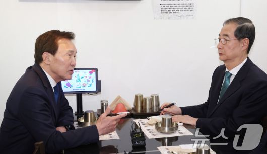 (서울=뉴스1) 박세연 기자 = 한덕수 무소속 대통령 선거 예비 후보와 손학규 전 민주당 대표가 5일 서울 종로구의 한 식당에서 만찬 회동을 갖고 있다. (공동취재) 2025.5.5/뉴스1psy5179@news1.krCopyright ⓒ 뉴스1. All rights reserved. 무단 전재 및 재배포, AI학습 이용 금지.