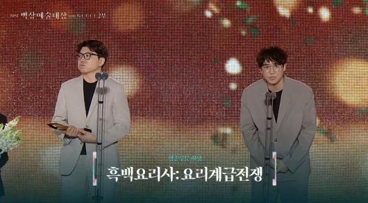 '흑백요리사'가 방송 부문 대상을 품에 안았다. 연출을 맡은 김학민PD는 "중심을 맡아주신 백종원·안성재 두 심사위원님, 모든 걸 불태우셨던 셰프 출연자님들 모두 감사드린다"고 인사했다.