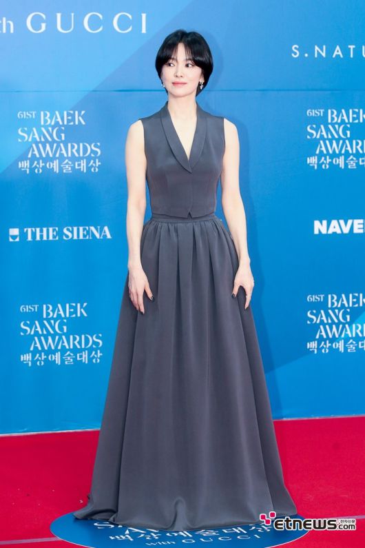 배우 송혜교가 5일 서울 강남구 코엑스에서 진행된 제61회 백상예술대상 레드카펫 일정에 참석했다. '백상예술대상'는 방송, 영화, 연극을 모두 아우르는 국내 유일무이 종합 예술 시상식이다. 전자신문인터넷 이승훈 기자 (mozart1205@etnews.com) [Copyright © 전자신문. 무단전재-재배포금지]