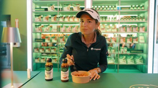 도널드 트럼프 미국 대통령의 손녀인 카이 트럼프가 1일(현지 시간) 미국 텍사스 댈러스의 TPC 크레이그랜치에서 열린 ‘더 CJ컵 바이런 넬슨’에 마련된 K푸드 체험 공간 ‘하우스 오브 CJ(HOUSE OF CJ)’에서 한식을 즐기고 있다. CJ제일제당 제공 |