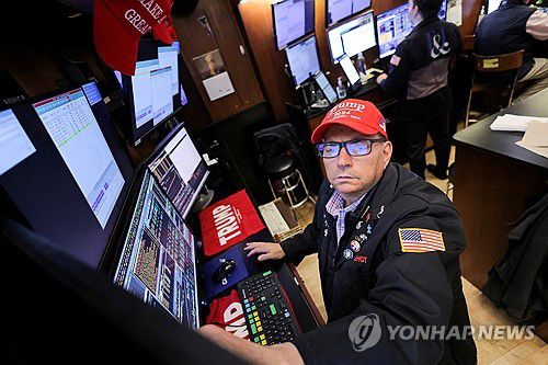 지난해 11월 '트럼프 지지' 모자 쓴 뉴욕증권거래소 트레이더 |