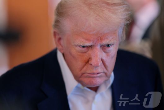 도널드 트럼프 미국 대통령이 4일(현지시간) 미국 플로리다주 웨스트팜비치에서 에어포스원을 타고 워싱턴DC로 돌아오는 비행기에서 질문하는 기자를 응시하고 있다. ⓒ 로이터=뉴스1 ⓒ News1 류정민 특파원 |
