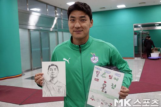 대전하나시티즌 주민규가 팬들이 그려준 그림을 들고 환히 웃고 있다. 주민규는 “팬들이 정성껏 그려주신 그림들이다. 그림이 훨씬 더 많았다. 그 가운데 두 개만 고른 거다. 선택하기가 너무 힘들었다. 오른쪽에 있는 건 4살 어린이가 그려준 거다. 제일 어린 친구 걸 선택했다. 대전을 사랑해 주시는 모든 분께 정말 감사하다. 내가 그분들의 성원에 조금이나마 보답할 수 있도록 더 열심히 하겠다”고 했다. 사진=이근승 기자 |