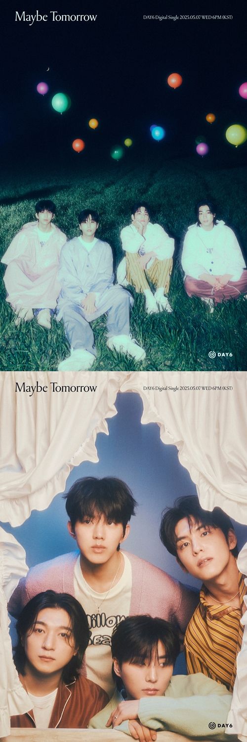 DAY6는 오는 7일 새 디지털 싱글 ‘Maybe Tomorrow’(메이비 투모로우)를 발표한다. JYP엔터테인먼트는 공식 SNS 채널에 성진, Young K(영케이), 원필, 도운의 개별 티저 사진을 순차 오픈한 데 이어 5일 오후 단체 콘셉트 포토 2장을 게재하고 기대감을 최고조로 끌어올렸다.