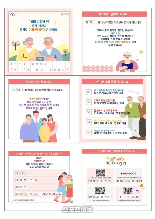 〔스포츠서울│수원=좌승훈기자〕경기도는 국내 치매환자가 내년 100만 명을 넘어설 것으로 예상된다며 치매 예방부터 진단, 가족돌봄까지 지원하는 46개 치매안심센터의 적극 이용을 당부했다.