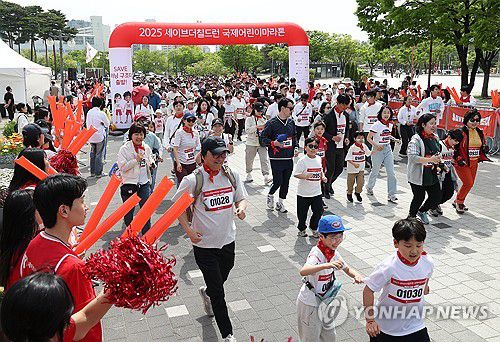 (서울=연합뉴스) 성도현 기자 = 전쟁과 재난 위험에 처한 아동을 돕기 위한 '2025 국제어린이마라톤' 서울 대회가 6일 마포구 월드컵공원 일대에서 열렸다.