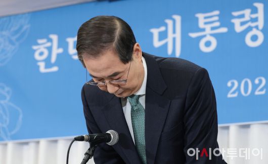 아시아투데이 송의주 기자 = 한덕수 무소속 대통령선거 예비후보가 6일 서울 중구 코리아나호텔에서 열린 관훈클럽 초청 토론회에서 인사를 하고 있다. ⓒ "젊은 파워, 모바일 넘버원 아시아투데이"