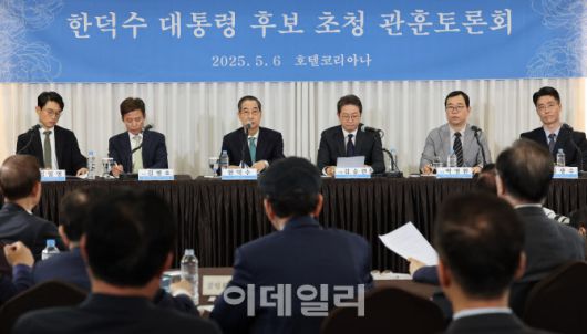 [국회사진취재단] 한덕수 무소속 대통령선거 예비후보가 6일 서울 중구 코리아나 호텔에서 열린 관훈토론회에서 패널의 질문에 답변하고 있다.