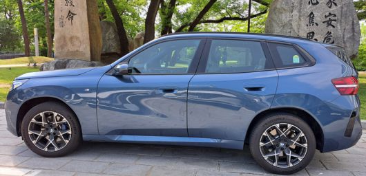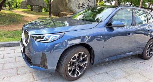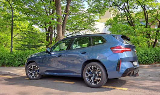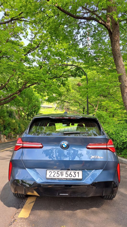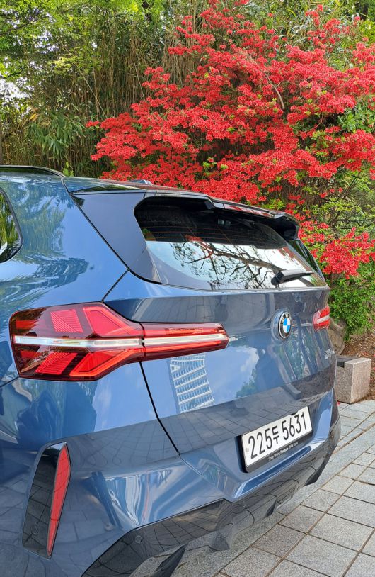 옆에서 보면 SUV의 실루엣 속에 세단 비율이 섞여 있어, 단단하고 정제된 인상이 두드러진다. 화살촉 형태의 주간주행등(DRL), T자형을 재해석한 리어램프 등도 BMW의 최신 디자인 언어를 충실히 따른다.