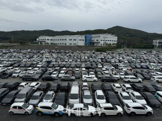 경기 안성 롯데오토옥션 주차장에 주차된 경매 차량들.(사진=공지유 기자) |
