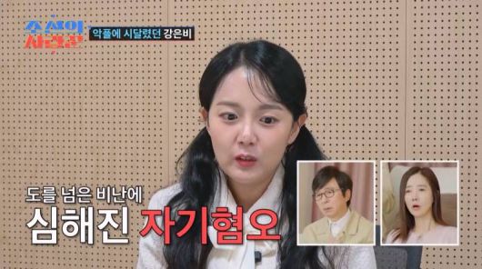 이날 강은비는 갑자기 연예계에서 자취를 감춘 사연도 밝혀졌다. 그는 안티 팬들의 도 넘는 괴롭힘에 결국 연예계와 거리를 두게 됐다고 고백했다. 이와 관련해 강은비는 "(어린 나이에) 감당하기 힘들었다. '그냥 죽어야지'라는 생각이 항상 머릿속에 있었다"고 털어놨다.