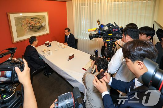 (서울=뉴스1) 허경 기자 = 한덕수 무소속 대통령선거 예비후보와 이낙연 전 국무총리가 6일 서울 중구 컨퍼런스하우스 달개비에서 오찬회동을 하고 있다. (공동취재) 2025.5.6/뉴스1neohk@news1.krCopyright ⓒ 뉴스1. All rights reserved. 무단 전재 및 재배포, AI학습 이용 금지.