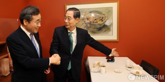 [서울=뉴스핌] 윤창빈 기자 = 한덕수 대선 예비후보, 이낙연 전 국무총리가 6일 오후 서울 중구 달개비에서 오찬 회동을 갖고 있다. 2025.05.06 pangbin@newspim.com