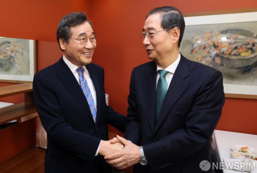 [서울=뉴스핌] 윤창빈 기자 = 한덕수 대선 예비후보, 이낙연 전 국무총리가 6일 오후 서울 중구 달개비에서 오찬 회동을 갖고 있다. 2025.05.06 pangbin@newspim.com