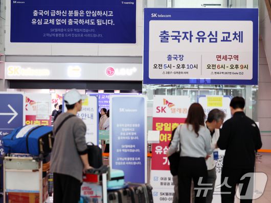 5일 인천국제공항 제2여객터미널 출국장에 마련된 SK텔레콤(SKT) 로밍센터에서 여행객들이 유심 교체 서비스를 받기 위해 대기하고 있다.. 2025.5.5/뉴스1 ⓒ News1 황기선 기자 |