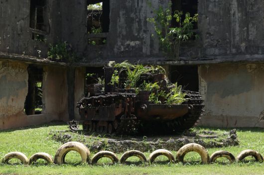 지난달 8일 태평양 섬나라 팔라우에 2차 대전 당시 일본군이 쓰던 탱크가 서 있다. 로이터 연합뉴스