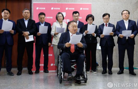 [서울=뉴스핌] 윤창빈 기자 = 이상민 국민의힘 대전시당위원장을 비롯한 원외 당협위원장들이 6일 오후 서울 여의도 국회에서 김문수 대선 후보와 한덕수 예비후보의 단일화를 촉구하는 호소문을 발표하고 있다. 2025.05.06 pangbin@newspim.com