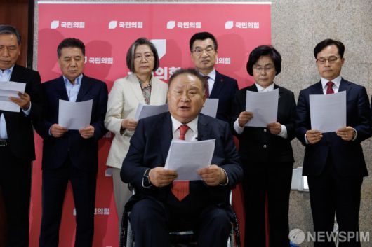 [서울=뉴스핌] 윤창빈 기자 = 이상민 국민의힘 대전시당위원장을 비롯한 원외 당협위원장들이 6일 오후 서울 여의도 국회에서 김문수 대선 후보와 한덕수 예비후보의 단일화를 촉구하는 호소문을 발표하고 있다. 2025.05.06 pangbin@newspim.com
