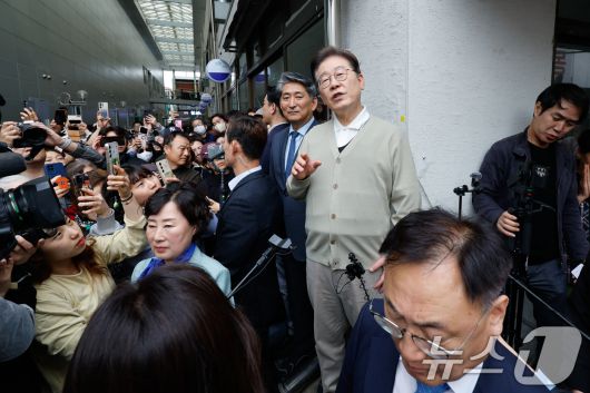 (옥천=뉴스1) 안은나 기자 = 이재명 더불어민주당 대통령 후보가 골목골목 경청투어 이틀차인 6일 오후 충북 옥천군 공설시장을 찾아 즉흥 연설하고 있다. 2025.5.6/뉴스1coinlocker@news1.krCopyright ⓒ 뉴스1. All rights reserved. 무단 전재 및 재배포, AI학습 이용 금지.