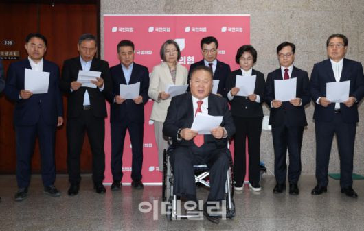 [이데일리 노진환 기자] 이상민 국민의힘 대전 유성을 당협위원장 등 원외 당협위원장들이 6일 서울 여의도 국회 원내대표실 앞에서 김문수 후보와 무소속 한덕수 후보의 단일화를 촉구하고 있다.