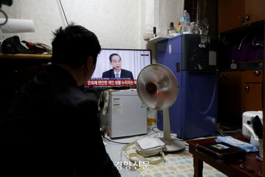 5월 연휴 마지막 날인 6일 서울 용산구 동자동 쪽방촌에서 한 주민이 뉴스를 시청하고 있다. 문재원 기자 |