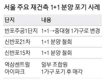 재건축·재개발 과정에서 조합원이 두 가구를 받는 이른바 '1+1 분양'이 철저히 외면받고 있다.