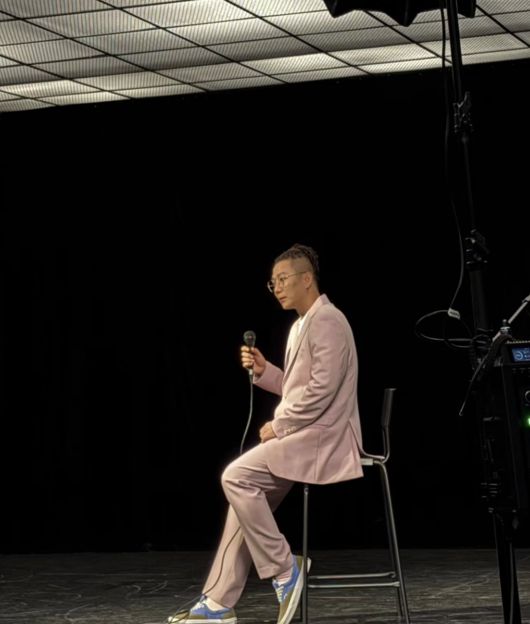 공개된 사진 속에는 핑크색 정장을 입은 채 촬영에 임하고 있는 윤민수의 모습이 담겼다.