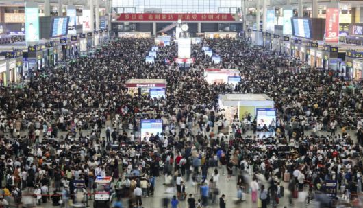 중국 노동절 상하이 철도역의 인파./EPA·신화 연합뉴스