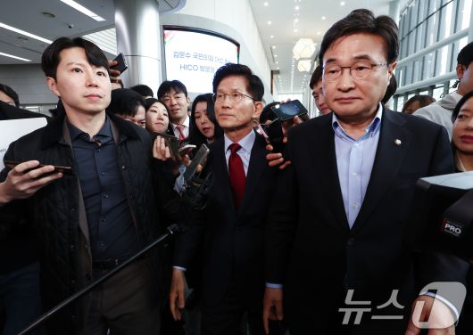 (포항=뉴스1) 김민지 기자 = 김문수 국민의힘 대통령 후보가 6일 경북 경주시 HICO(정상회의장) 미디어센터에서 단일화 문제를 놓고 당 지도부와 갈등을 빚고 있는 가운데 김대식 의원과 대화를 하기 위해 이동하고 있다. 2025.5.6/뉴스1kimkim@news1.krCopyright ⓒ 뉴스1. All rights reserved. 무단 전재 및 재배포, AI학습 이용 금지.
