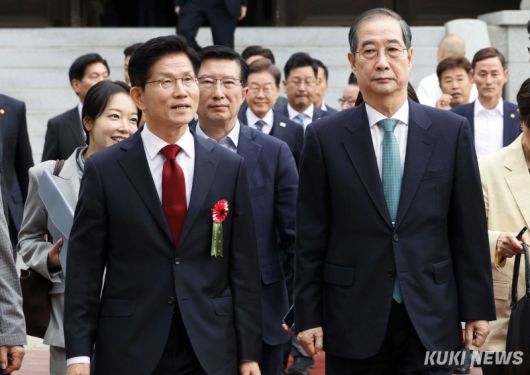 김문수 국민의힘 대선후보와 한덕수 무소속 예비후보가 지난 5일 서울 종로구 조계사에서 열린 ‘부처님오신날’ 봉축식을 마치고 함께 걸어가는 중이다. 곽경근 대기자 |