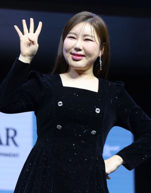 가수 송가인이 11일 오후 서울 강서구 등촌동 스카이아트홀에서 열린 정규 4집 '가인;달' 발매 기념 쇼케이스에서 포즈를 취하고 있다. /사진=뉴시스 |
