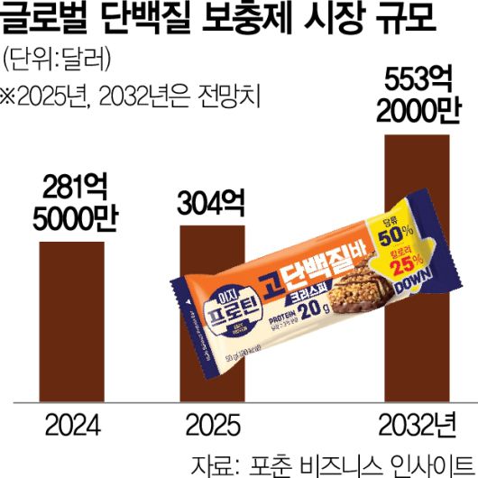최근 원가 부담 등을 이유로 라면에서부터 과자, 음료 등 대다수 가공식품의 가격이 인상되는 상황에서 롯데웰푸드가 단백질 제품의 가격을 낮추는 것은 단백질 식품 시장의 성장 가능성을 높게 점치고 있기 때문으로 풀이된다. 포춘 비즈니스 인사이트에 따르면 지난해 281억 5000만 달러(약 39조 7000억 원) 규모였던 전세계 단백질 보충제 시장은 연 평균 8.93%의 성장률을 보이며 올해 304억 달러(42조 8700억 원)를 기록한 뒤 2032년 553억 2000만 달러(78조 원)로 늘어날 것으로 전망된다.