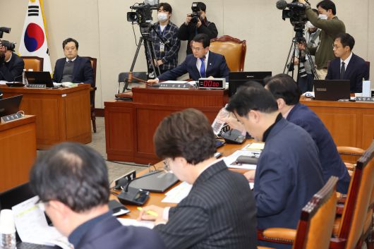 행정안전위원회 전체회의에서 신정훈 위원장이 의사봉을 두드리고 있다. [연합] |