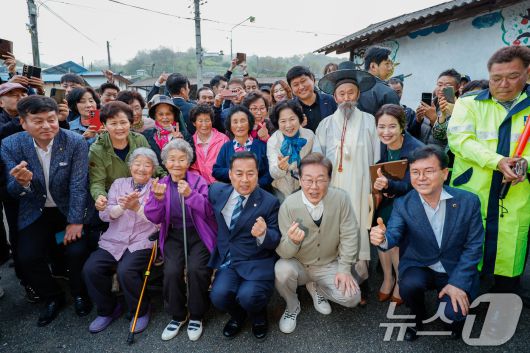 (장수=뉴스1) 안은나 기자 = 이재명 더불어민주당 대통령 후보가 골목골목 경청투어 이틀차인 6일 오후 전북 장수군 오옥마을을 찾아 주민들과 기념 촬영하고 있다. 2025.5.6/뉴스1coinlocker@news1.krCopyright ⓒ 뉴스1. All rights reserved. 무단 전재 및 재배포, AI학습 이용 금지.