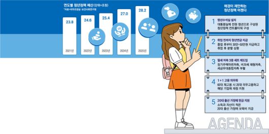 현재 국무조정실 청년정책조정실이 비슷한 역할을 한다. 청년정책을 발굴하고 수립·시행·점검하기 위해 청년정책조정위원회를 연다. 하지만 70대 국무총리가 위원장이고 민간 부위원장은 50대 정치인 출신이다. 청년의 실상을 정책에 반영하기 어려운 구조다. 나원희 한국보건사회연구원 부연구위원은 “청년예산과 청년정책 간 연계 방안을 마련하고 효과적인 평가 체계를 구축해야 한다”고 지적했다.