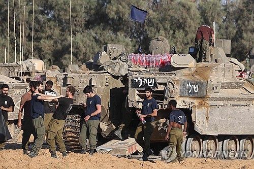 가자 인근에 주둔 중인 이스라엘 병사들. [AFP=연합뉴스] |